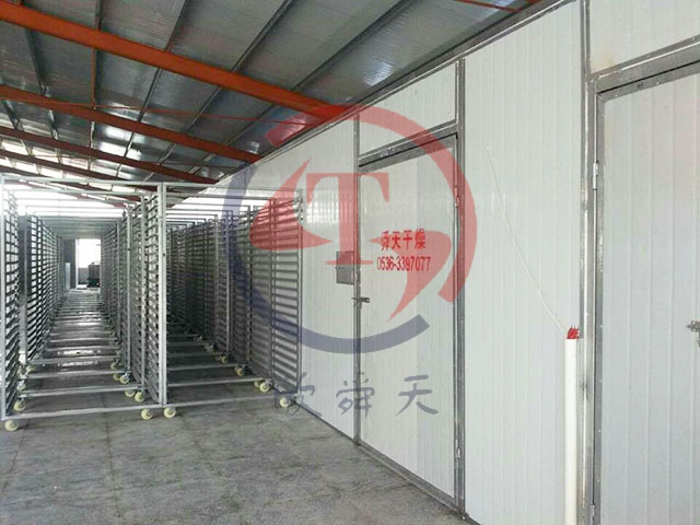 1、循環烘干,與物料的前期處理,形成流水作業,從原材料、前處理、裝盤、裝車、烘干、出料、卸料、后處理、包裝等,可以形成一條流水線。