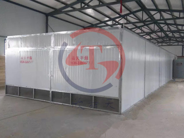 1、烘干機主體,就是一個長方體,一頭是熱風發生器(爐頭部分)和另部分烘干隧道組成,烘干隧道中間,有一面墻,也叫導風板;隧道一端是爐頭,另一端是進出料大門,因為是雙烘道,所以兩個門,每個門有兩個百葉風門(也可以是電動門),靠近中間的是內百葉風門,靠近兩側的是外百葉風門,四個風門,有兩個在工作,分別起到排濕和進新風的作用;爐頭這邊,長方體頭端中部,是一個內百葉風門(可調),熱風發生器和風機之間兩側,是外百葉風門,分別起到進新風,排濕的功能;熱風發生器,兩邊烘道由風機共享。