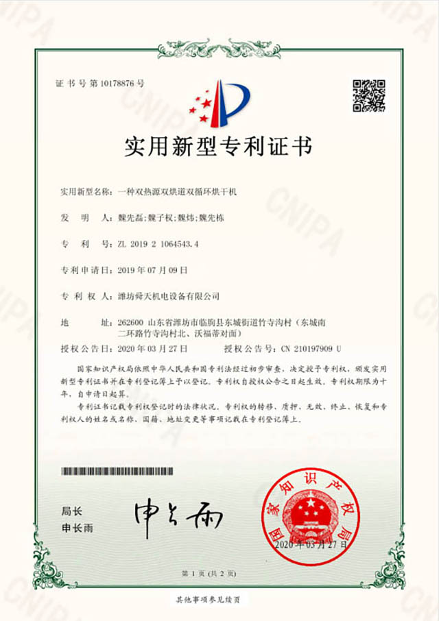 雙烘道雙循環烘干機的優點